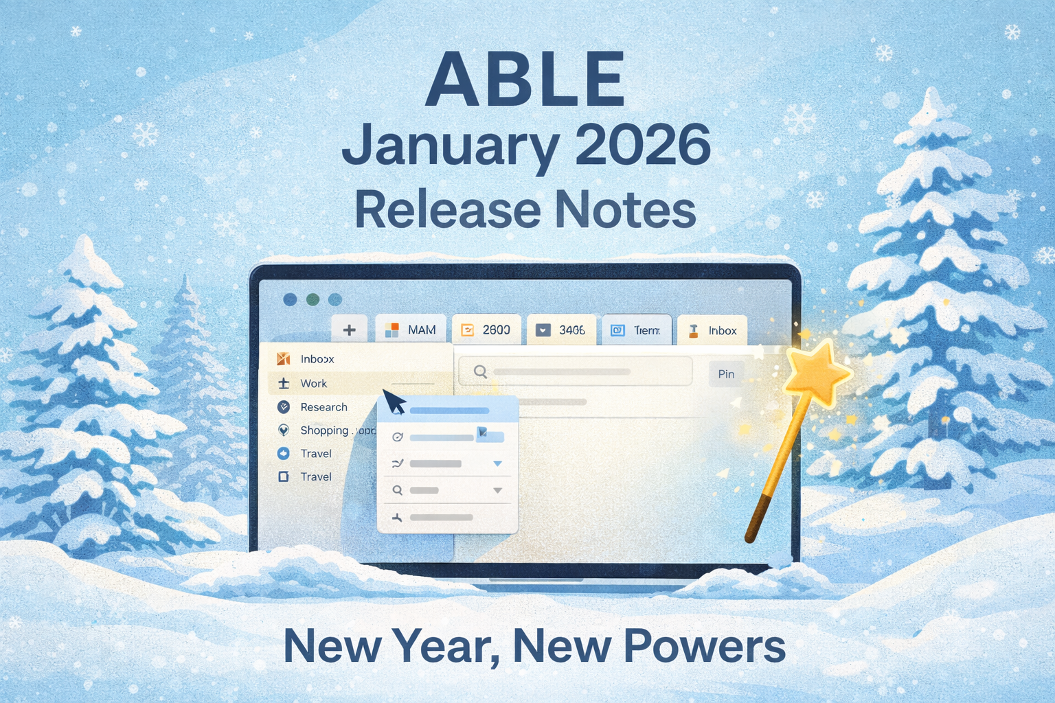 The new year has begun, and with it comes a release packed with some seriously satisfying upgrades. From smarter tabs to smoother context management, ABLE is leaner, quicker, and more visual than ever. Letโs take a tour of whatโs new in your favorite productivity space.